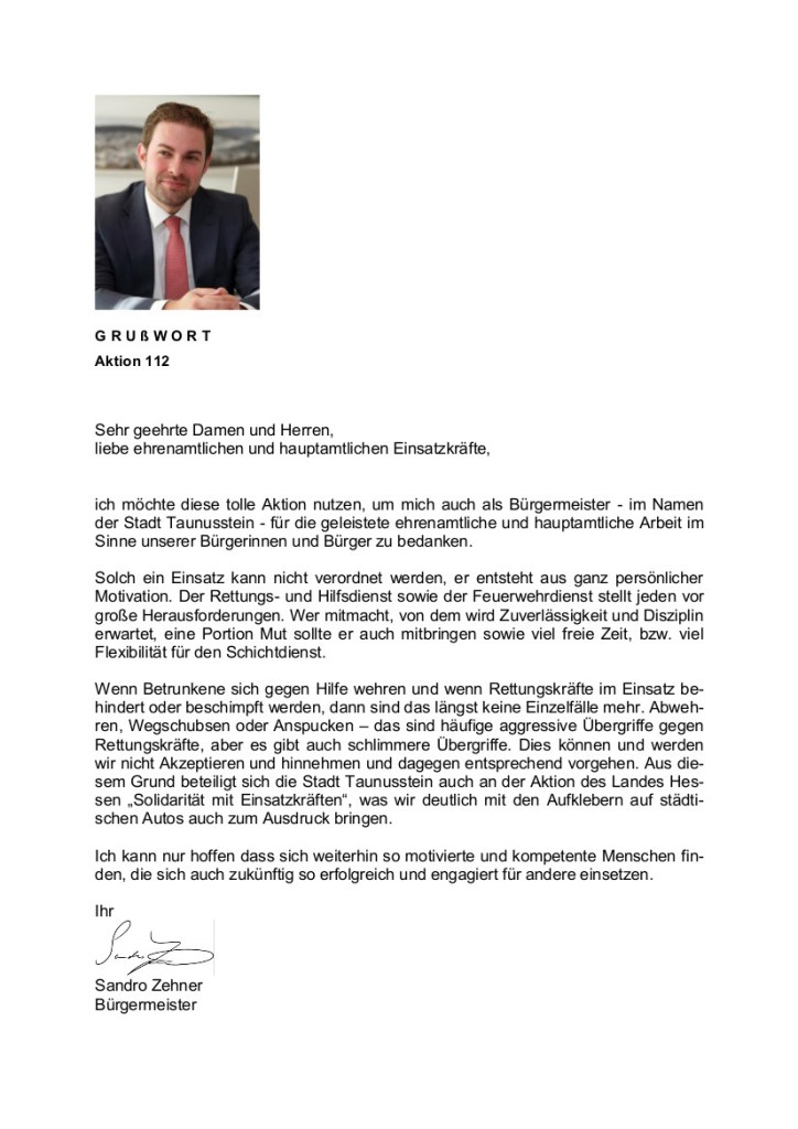 Der „112-Tag“ wurde erstmals für Taunusstein am 11. Februar 2018 ausgerufen und soll ein Jährliches Event werden. Ziel ist es die Arbeit aller Rettungs- und Einsatzkräfte zu würdigen sowie die Vereine und Organisationen dahingehend zu promoten, weitere Mitglieder und Unterstützer zu finden. Eine grandiose Idee, von der ich hoffe das sie weitere Kommunen inspiriert, ihre Helfer zu ehren und zu unterstützen.